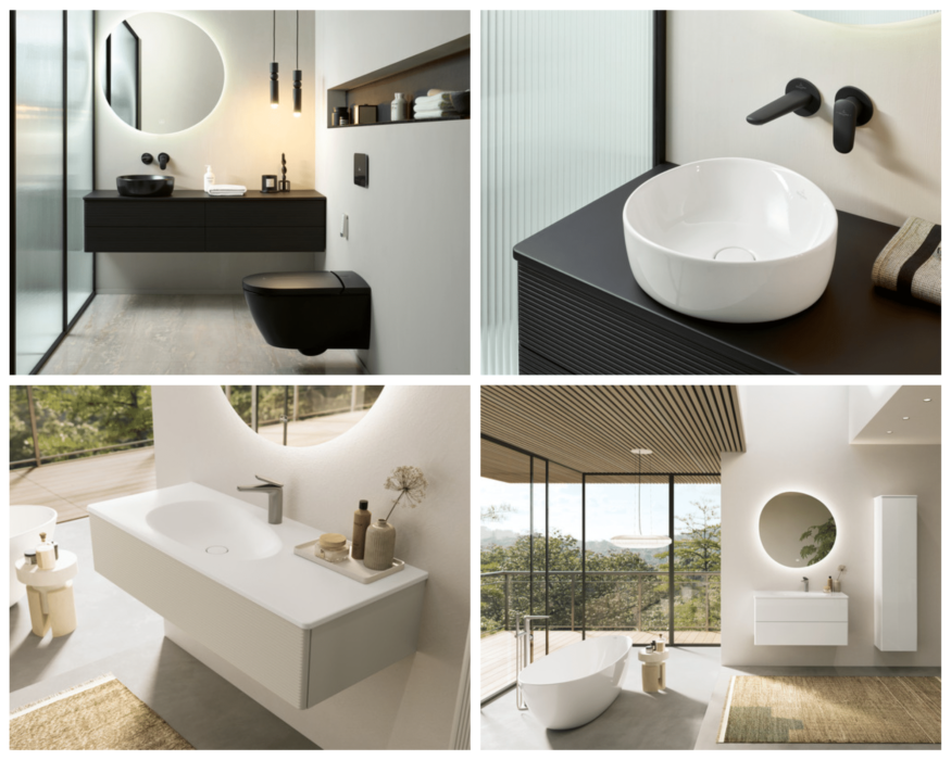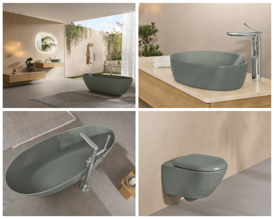 Inspiriert von der Natur sind auch die Farben: Neben klassischem Weiß in matter oder glänzender Ausführung gibt es die Keramik auch in den aktuellen Mattfarben Pure Black, Almond und im neuen Farbton Morning Green. Es sind sanfte, geerdete Töne, die Ruhe und Entspannung ins Bad bringen. Ergänzt wird die Palette durch naturnahe Möbelfarben wie Stone Grey, Leaf Green oder Midnight Blue. Besonderes Highlight: Der organisch geformte Antao-Lichtspiegel in drei verschiedenen Ausführungen schenkt dem Raum mit seinem atmosphärischen Hintergrundlicht eine ganz besondere Stimmung – via Touch-Sensor oder auf Wunsch mit smarter ZIGBEE-Steuerung.© Villeroy & Boch