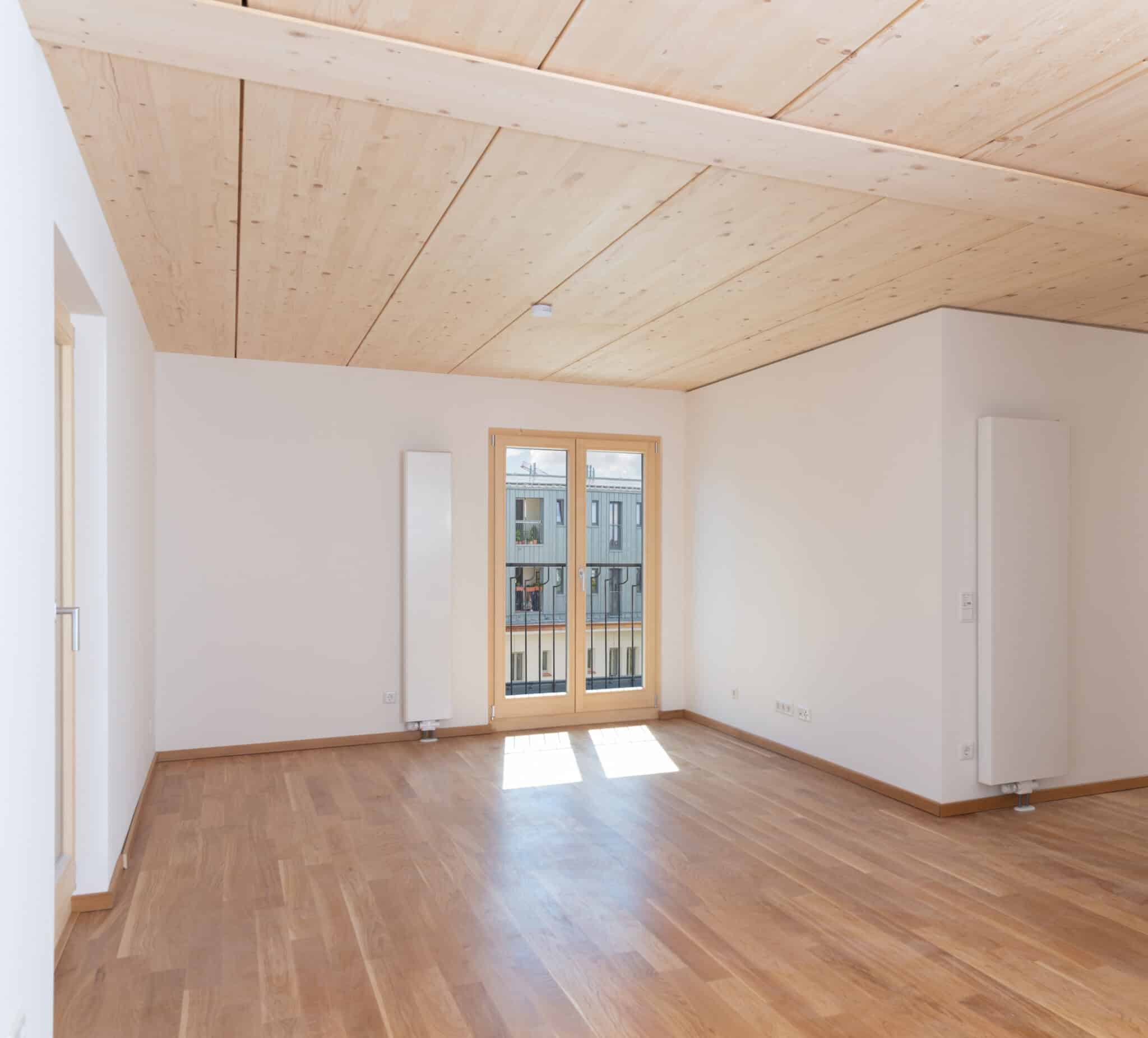 Auch in den Wohnungen im „Gelben Block“ findet sich viel Holz, das für ein gutes Wohnklima und eine hohe Aufenthaltsqualität sorgt. © Daniel Samer