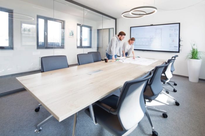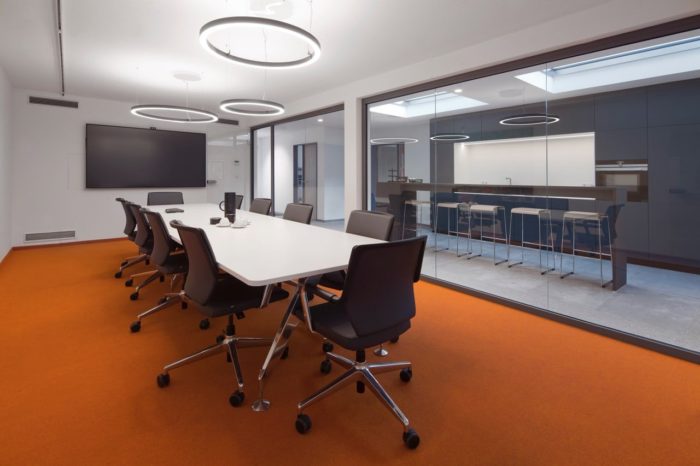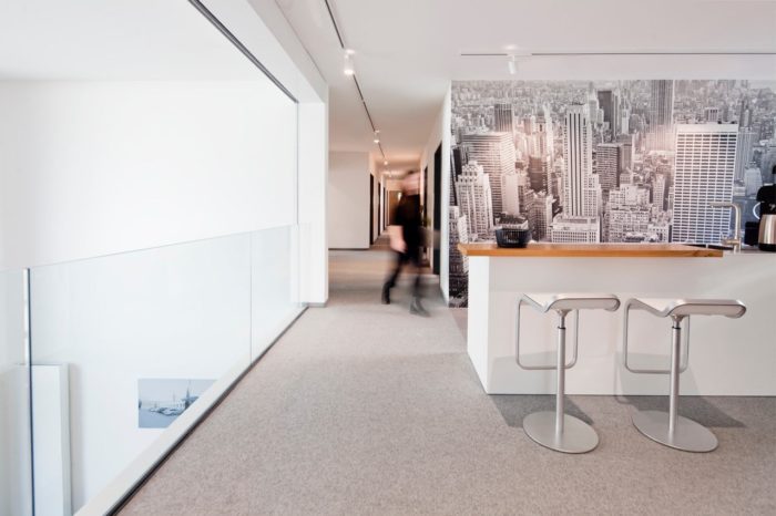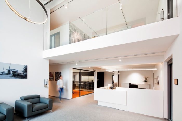 Ziel war es, die Eingangssituation zu öffnen, beide Geschosse bestmöglich miteinander zu verbinden und neben den einzelnen Büros auch Besprechungs- und Gemeinschaftsräume mit hoher Aufenthaltsqualität zu schaffen.