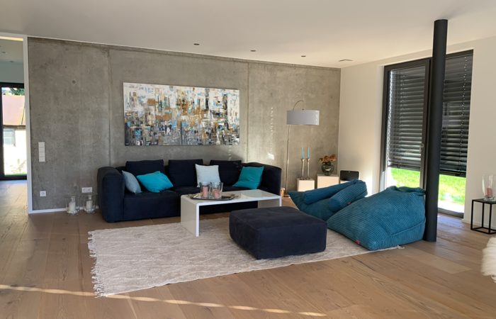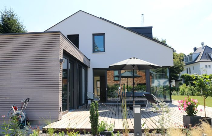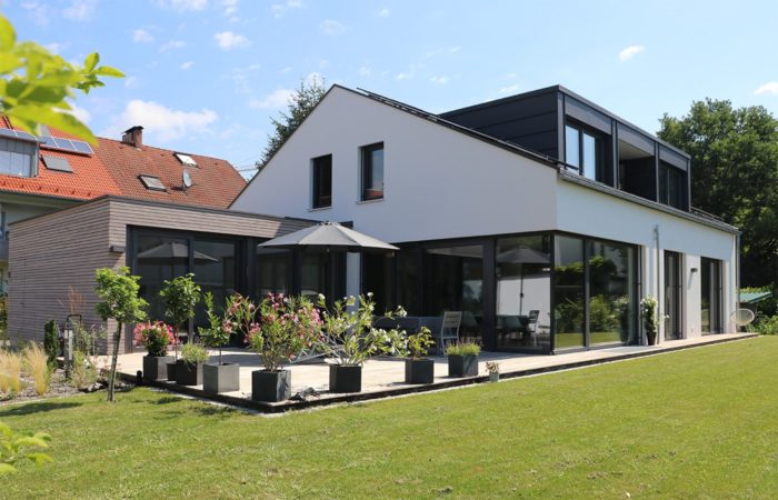 Der Neubau wurde als Massivbau im KfW55-Standard geplant. Lediglich die Innenwände im Dachgeschoss wurden in Holz-Leichtbauweise erstellt.