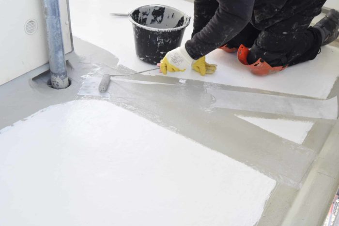 Nach der professionellen Vorbereitung des Untergrundes wird das PMMA‐Bauwerkabdichtungssystem Schicht für Schicht appliziert. Zunächst folgt die Grundierungs‐Ebene, auf die ein flüssig aufzutragendes Abdichtungssystem verlegt wird. Darin lassen sich sämtliche Anschlüsse wie Geländerpfosten, Türen, Fallrohre und Bodenabläufe sicher einbinden.
