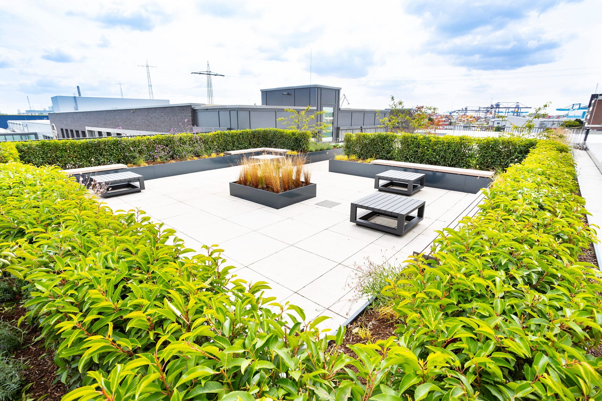 Im Zuge dieses Projekts in Düsseldorf wurde eine zuvor rein funktionale Dachfläche zu einem hochwertigen, dauerhaft nutzbaren Aufenthaltsbereich entwickelt. Grundlage dafür bildet das Optigrün Verkehrsdach begehbar, das technische Sicherheit und vielseitige Flächennutzung in einem durchdachten System vereint. Begehbare Verkehrsdächer stellen hohe Anforderungen an Planung und Ausführung. Neben der sicheren Lastabtragung und dauerhaften Funktionalität spielen auch Oberflächenentwässerung sowie die gestalterische Integration von Grün- und Aufenthaltsflächen eine zentrale Rolle. Das eingesetzte System von Optigrün ermöglicht genau diese Kombination und schafft so zusätzliche Nutzflächen auf dem Dach − ein wichtiger Beitrag zur zukunftsfähigen Stadtentwicklung.