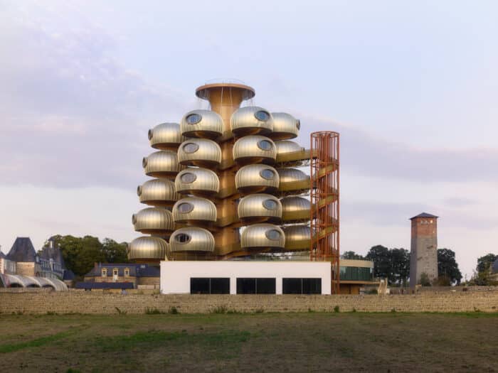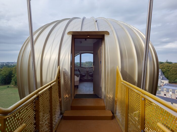 In Piré-sur-Seiche, nahe Rennes in der Bretagne, wurde ein ganz besonderes Hotel realisiert: 42 Aluminiumkokons schweben über der umliegenden Landschaft – die luxuriösen Zimmer bieten einen atemberaubenden Ausblick und versprechen einen besonderen Urlaubsaufenthalt.
