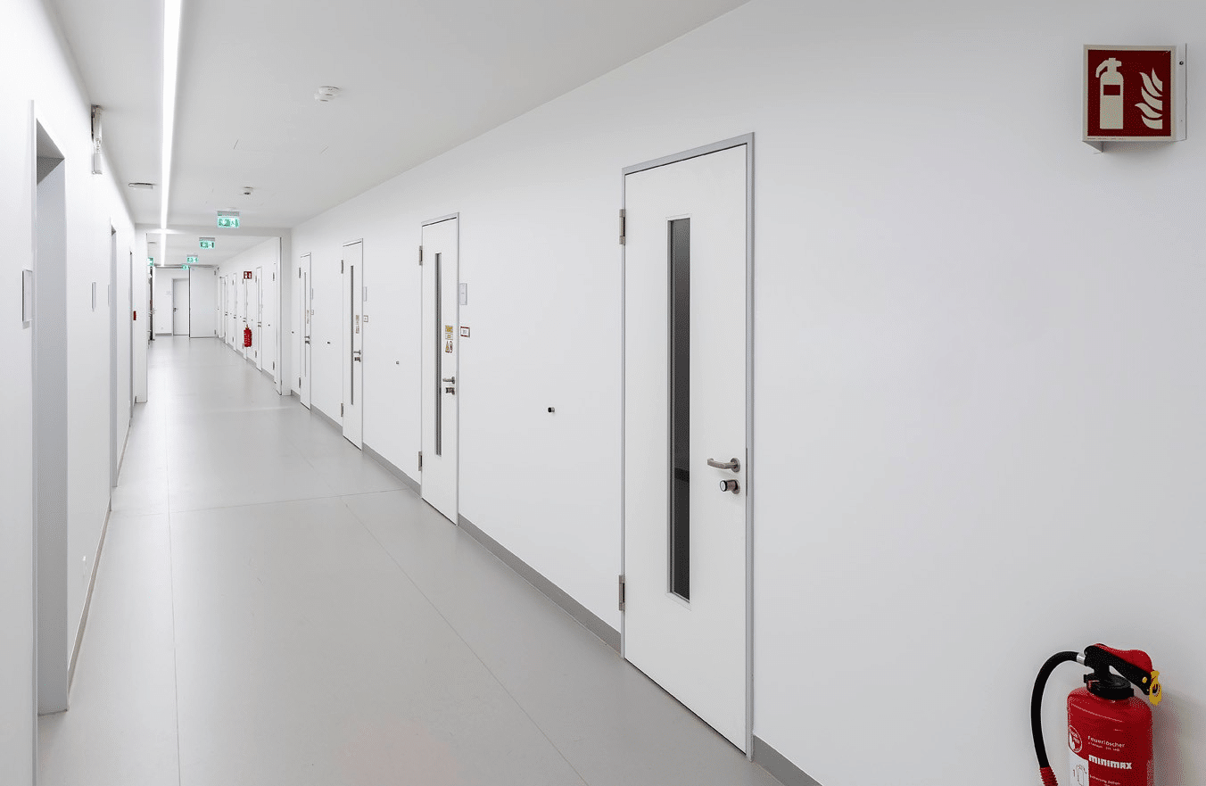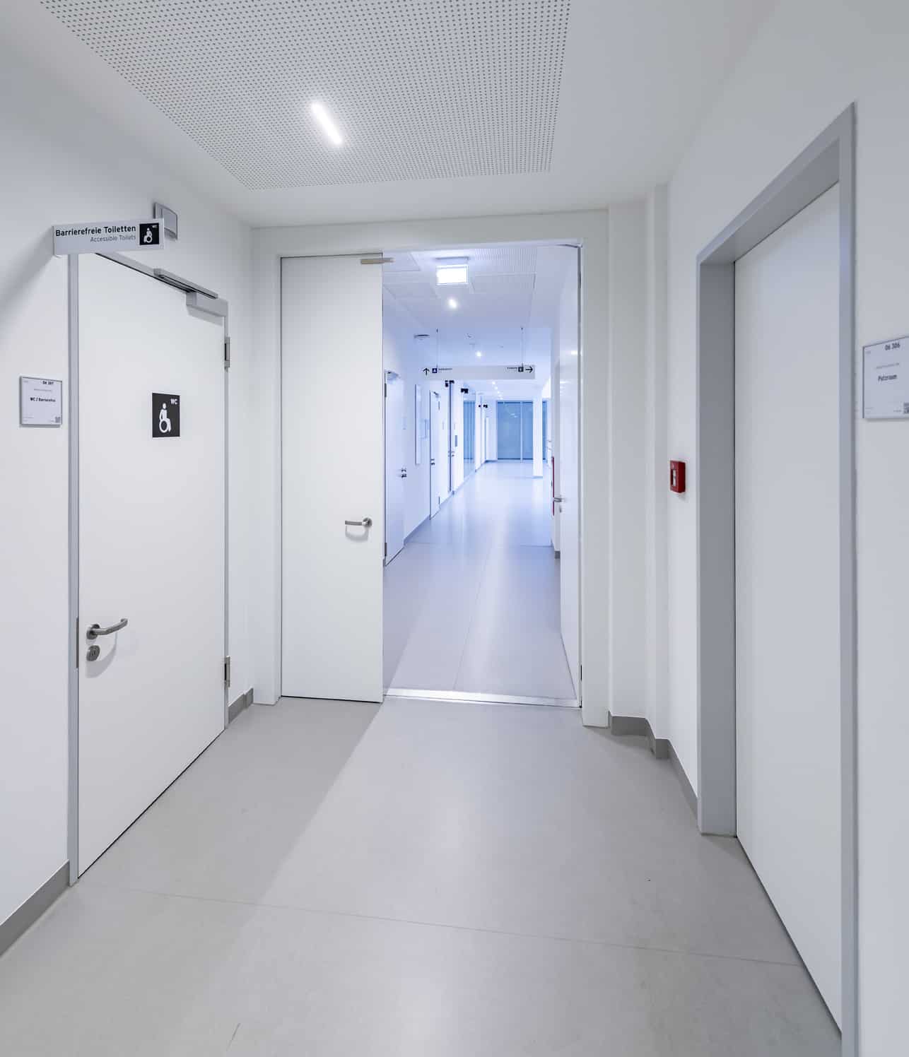 In dem modernen Forschungs- und Gesundheitskomplex kommen zahlreiche Türelemente von neuformtür zum Einsatz, die auf die unterschiedlichen Anforderungen der einzelnen Funktionsbereiche abgestimmt sind. Jedes Türelement leistet einen spezifischen Beitrag zur Sicherheit und Effizienz des Gebäudes.