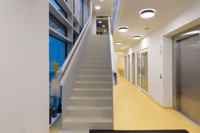 Der Beitrag zeigt den Neubau eines Gebäudes zur Kernzeitbetreuung in Oberkirchberg. Durch den Ersatz des Bestandes besteht in Oberkirchberg die Chance, städtebauliche Prägungen zu stärken bzw. die Struktur der Grundschule zu verfeinern. Der neue Baukörper bildet zum Platz im Norden eine adäquate Kante. Durch die Integration dieser Funktionen ins Gesamtgefüge sind zahlreiche kombinierte Nutzungen der „Funktionseinheit Schule“ denkbar, sämtliche Nutzungen ergänzen sich sinnvoll.