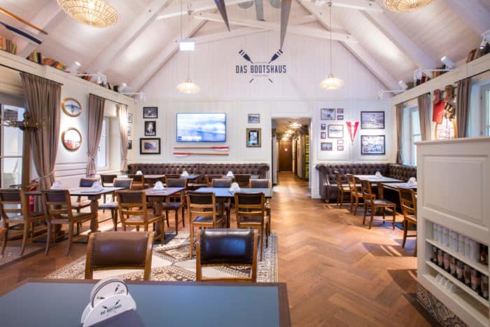 Das Konzept sieht einen ganzjährigen Betrieb vor – vom Frühstück bis zum Dinner wird der Gast kulinarisch umsorgt. Im Winter ist das Bootshaus ein wohlig-warmer Rückzugsort; im Sommer bieten mehrere