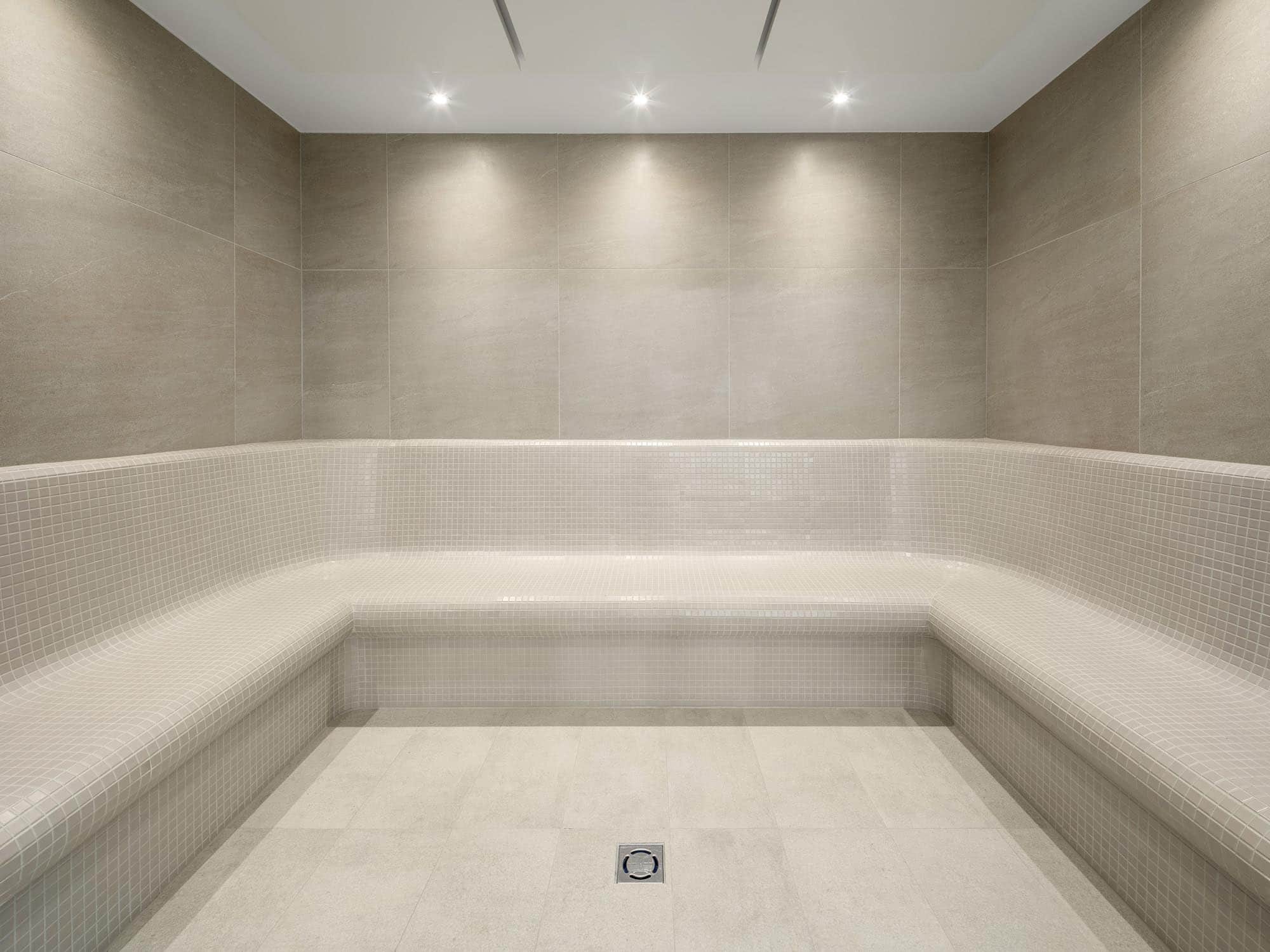 RAKO lieferte ein breites Sortiment an Keramikprodukten, von Mosaikfliesen (5 × 5 cm) bis hin zu Großformaten (60 × 60 cm), die die Anforderungen an Farbe, Größe und vor allem die Rutschfestigkeit (R10 für Duschen/WCs und die Bereiche A/B/C für das Begehen mit bloßen Füßen) erfüllen, die den strengen Normen für Hygienebereiche entsprechen. Die perfekte Zusammenarbeit mit LASSELSBERGER und das professionelle Projektmanagement waren dabei entscheidend für die erfolgreiche Umsetzung des Schwimmbadkomplexes.