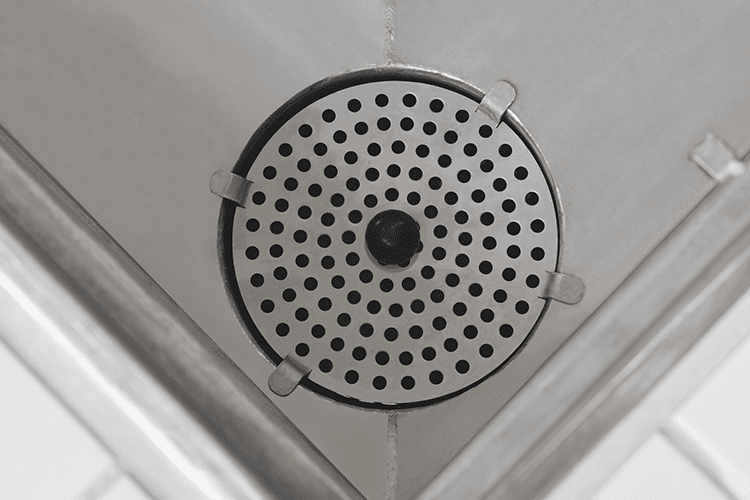Die Herausforderung für Planung und Montage bestand in dem Aufeinandertreffen von sehr großen Rinnenlängen und bereits vorhandenen, vorgegebenen Kernlochbohrungen in der Bodenplatte, in die ACO Brandschutzabläufe mit einem Trockenbauelement Fit-In gesetzt werden mussten. Die Lösung umfasste ein maximal präzises Aufmaß (mittige Abstände der Kernlochbohrungen) und darauf aufbauend die millimetergenaue Maßkonstruktion und -produktion der einzelnen Rinnenteile inkl. der Ablaufstutzen. Insgesamt wurden 29 individuell gefertigte Rinnenteile in verschiedenen Längen von 1574 mm bis 6445 mm hergestellt. Die exakt platzierten Ablaufstutzen zum Ausgleich der Bautoleranzen ermöglichten einen perfekt fluchtenden Einbau der Rinnen.