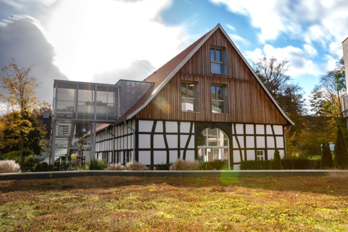 Mit großem Respekt für seine historischen Wurzeln haben wir das denkmalgeschützte Gebäude unweit des Bad Oeynhausener Kurparks energetisch hochwertig, in ökologisch nachhaltiger Bauweise und unter Verwendung der entsprechenden Baumaterialien für uns nutzbar gemacht. Dabei haben wir gezeigt, wie man den Anforderungen des 21. Jahrhunderts in einem historischen Bau aus dem 19. bzw. 20. Jahrhundert gerecht werden und ein ideales Umfeld für modernes Arbeiten schaffen kann.