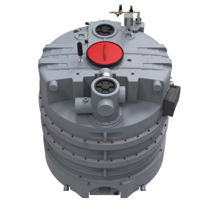 Der Behälter wurde multifunktional als Fettabscheider, Leichtflüssigkeitsabscheider, biologische Abwasserbehandlungsanlage und als möglichen Schlammfang konzipiert. Die Befüllung mit