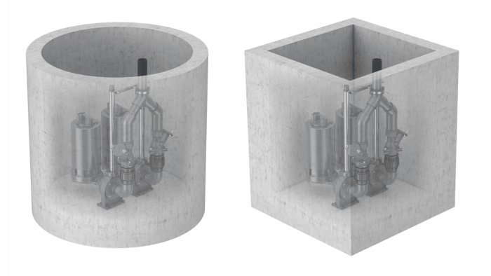 Die Planung und Montage von Pumpanlagen für bauseitige Betonschächte ist mit erheblichem Aufwand verbunden: Auswahl der passende Pumpen, Abstimmung der Rohrelemente für die