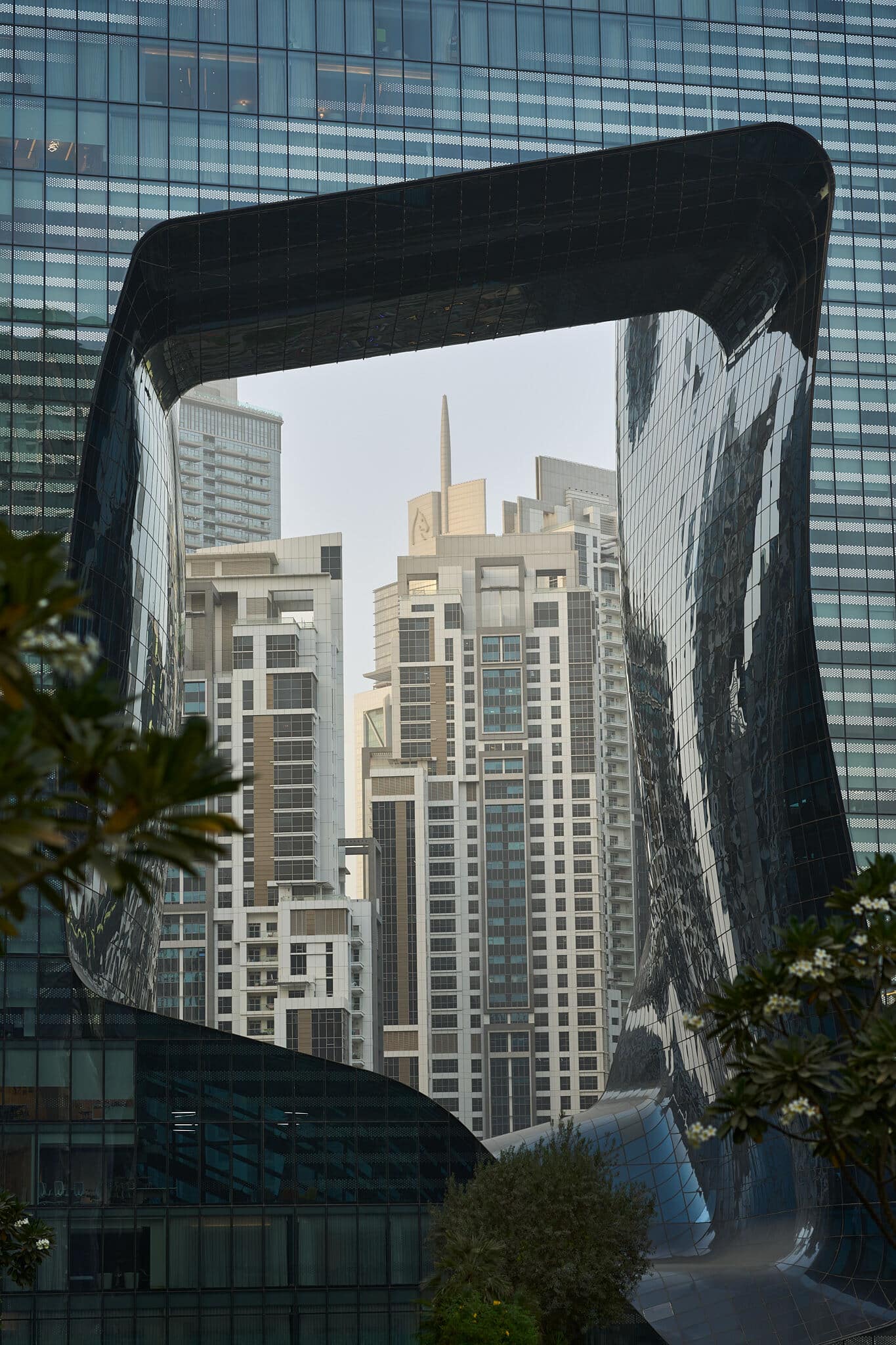 Mitten in Dubai steht ein skulpturaler Solitär, der ein architektonisches Vermächtnis markiert: The Opus von Zaha Hadid. Zwei Türme, durch eine 71 Meter hohe Brücke und einen amorphen Hohlraum visuell verbunden, bilden ein Gebäude, das mit Licht, Form und Material spielt – und gleichzeitig Raum für Hotel, Büros und Private Residences schafft.
