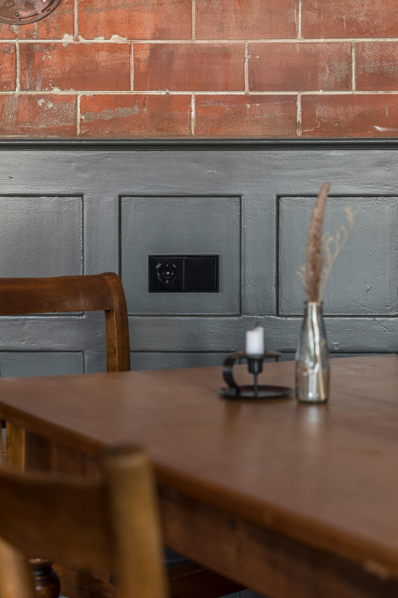 Das Motorworld Inn in Warthausen verbindet Restaurant, Biergarten und Hotel zu einem gastronomischen Angebot rund um das Thema Mobilität. Das Interior Design kombiniert Elemente unterschiedlicher Epochen. Im Veranstaltungsraum trifft nostalgisches Werkstattambiente auf moderne Gebäudetechnik. Zum Einsatz kommt das Programm LS 990 in Graphitschwarz matt mit verschiedenen Einsätzen – darunter Schalter, Steckdosen, USB-Ladegeräte, USB-Schuko-Steckdosen und Chinch-Audioanschlüsse. In Mehrfachrahmen sowie in Wandverkleidungen und Möblierungen integriert, fügen sich die Elektroelemente in das Raumkonzept ein und bieten zusätzlichen Komfort, etwa zum Laden mobiler Geräte.