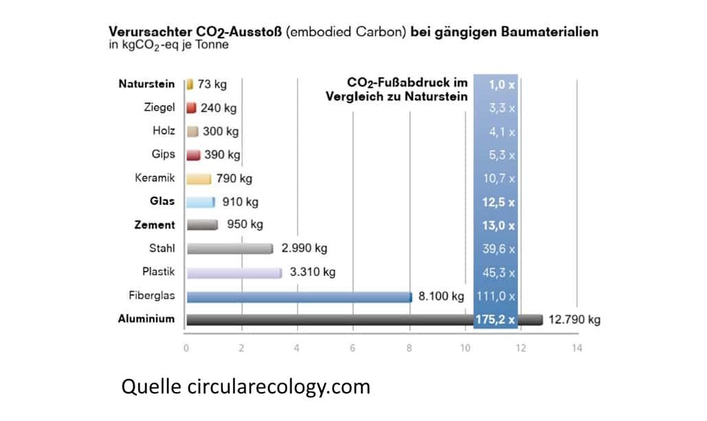 Architekten achten heute mehr denn je auf Nachhaltigkeit, Energieeffizienz und die Reduzierung der grauen Energie – also des versteckten Energieaufwands für Herstellung, Transport und Verarbeitung von Baustoffen. Naturstein punktet hier mit einem der geringsten CO₂-Fußabdrücke im Baustoffvergleich, da er naturbelassen und ohne energieintensive Prozesse entsteht. Regionale Gewinnung und modernste Fertigung mit 100% Grünstrom minimieren zudem zusätzlich die graue Energie.
