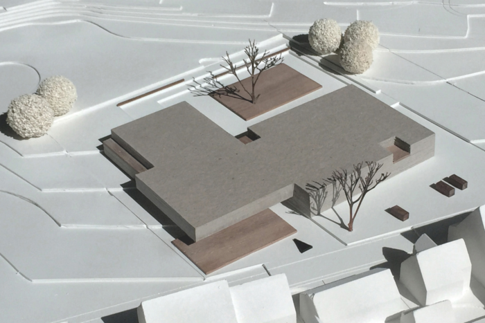 Schule, Sporthalle und Freiflächen sind zu einer Gesamtanlage verknüpft. Sie bilden für Schüler, Lehrer und Besucher einen definierten „Ort“ mit hohem Identifikationswert. Gebäude und Freianlagen fügen sich in die vorhandene Hangsituation ein. Als „Forum“ nutzbare Sitzstufen verknüpfen den leicht abgesenkten Pausenhof im südlichen Grundstücksteil mit dem anschließenden Gelände. Die Baukörper von Schule und Sporthalle schirmen die Wohnbebauung gegenüber dem lärmintensiven Pausenhof ab.