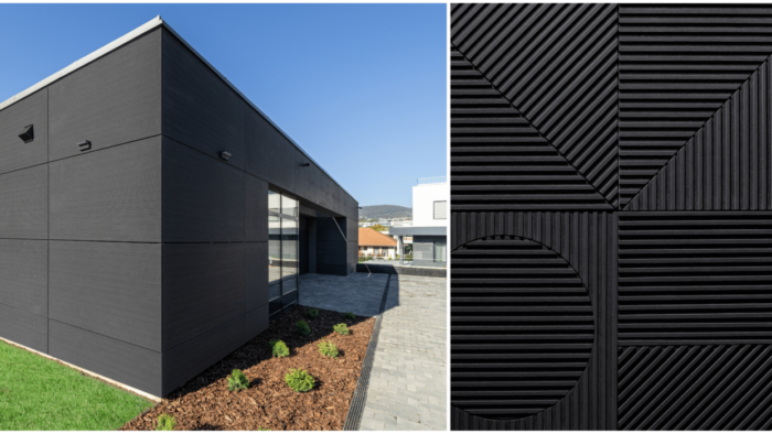 Prägende Fassadengestaltung in dunklen Farben mit EQUITONE [linea] LT85 Der neue tiefe Anthrazitton LT85 der