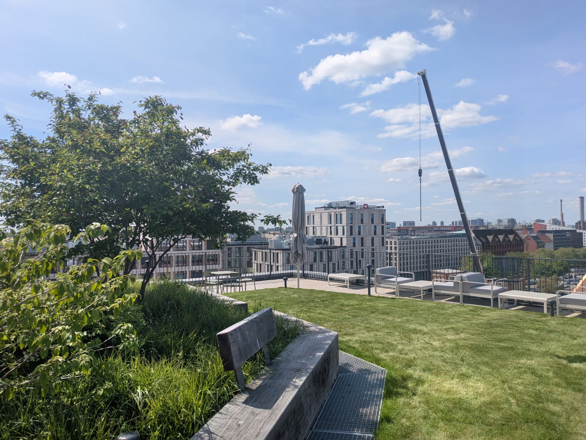 Innovatives Regenwassermanagement und eine grüne Dachlandschaft am Postbahnhof in Berlin.