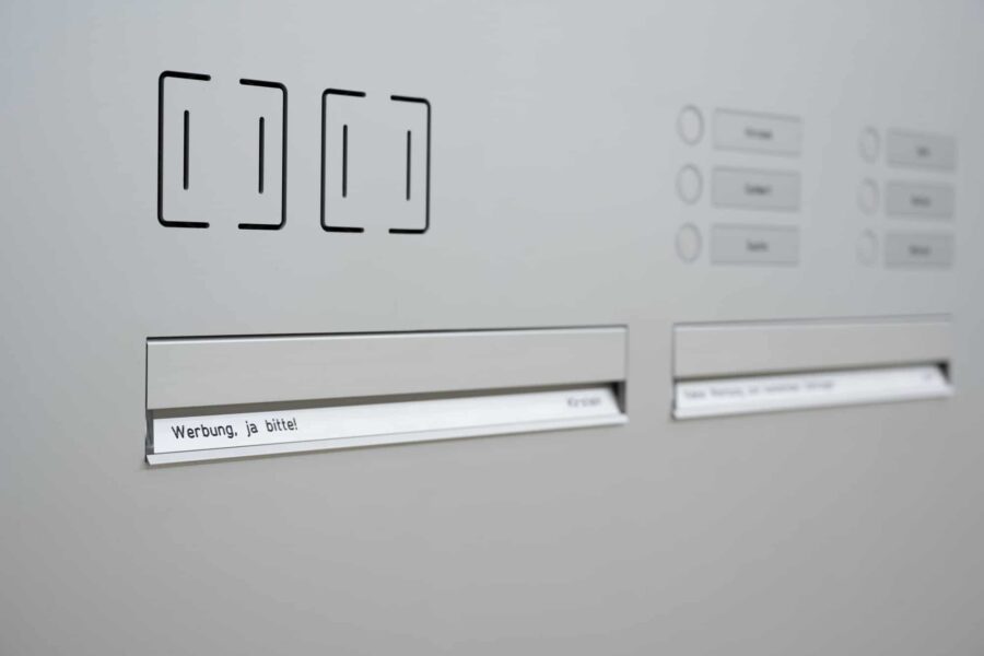 Auch im Detail denkt RENZ weiter. Die neuen Beschilderungsmöglichkeiten sorgen für eine durchgängige, elegante Gestaltung von Briefkasten- und Paketkastenanlagen. Einheitliche Größen, vielfältige Farboptionen und hochwertige Beschriftungsarten – von Gravur bis Digitaldruck – eröffnen Architekten und Projektentwicklern maximale Gestaltungsfreiheit.