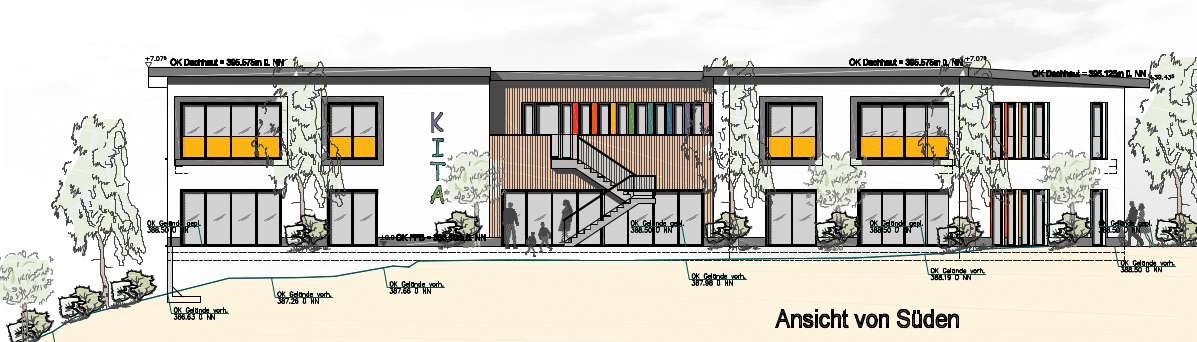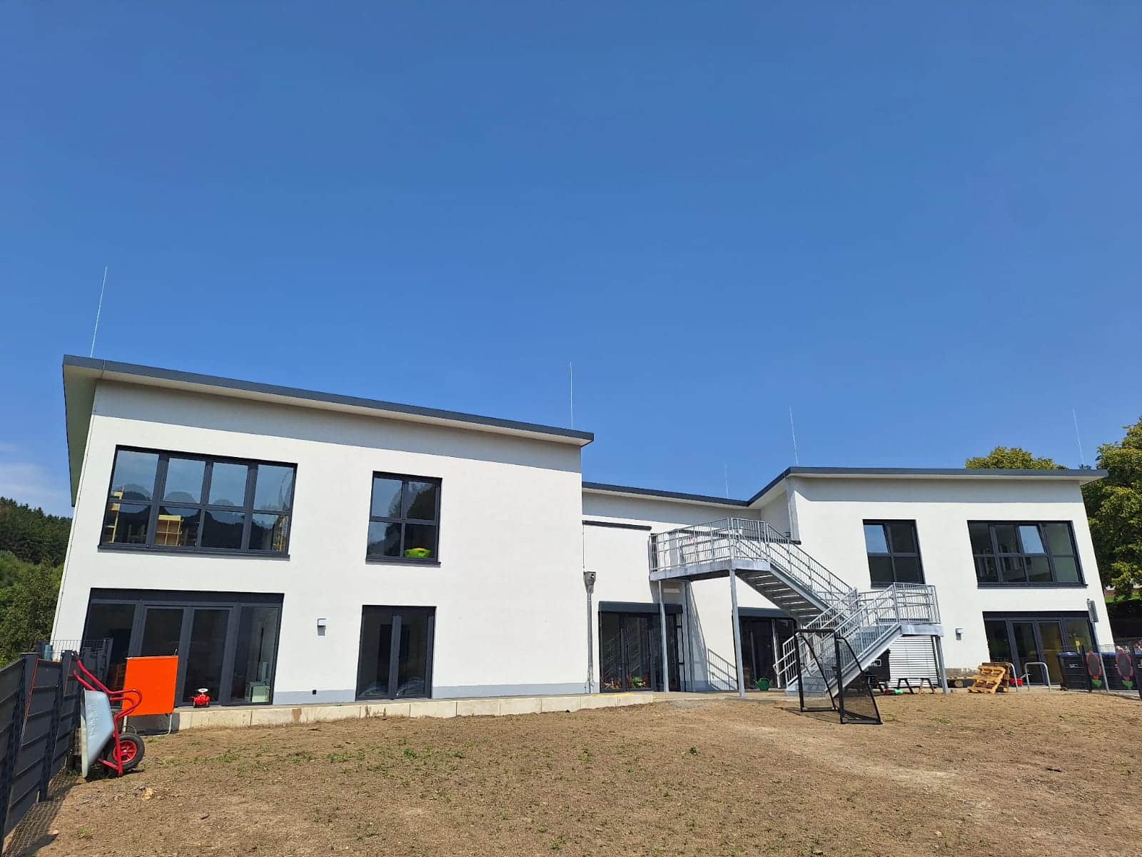 Den Neubau der KiTa in Hilchenbach – Helberhausen. Dabei handelt es sich um eine 4-gruppige, barrierefreie Kita. Baubeginn war im April 2024, Fertigstellung Juli 2025. Wir haben LP 1-5 gemacht und finden das Ergebnis super.