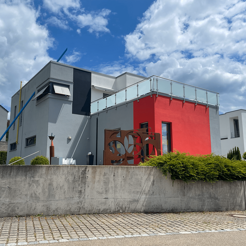 Diese Bilder zeigen ein Künstlerhaus in Krumbach (Schwaben) mit Galerie und großem Atelier im Bauhaus Stil. Der 80-Jährige Sigurd Rakel lebt und arbeitet in Krumbach seit 1974.