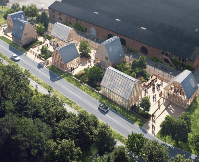 Mit dem Bau von Living Places Copenhagen wird das Konzept nun erstmals erlebbar und der Öffentlichkeit zugänglich gemacht. Die temporäre Installation besteht aus sieben Gebäuden auf dem Gelände eines stillgelegten Güterbahnhofs in Kopenhagen. Das ehemalige Industrieviertel Jernbanebyen befindet sich städtebaulich im Wandel und bildet damit einen idealen Kontext, um nachhaltige Wohnformen und Architektur der Zukunft zu diskutieren. Die temporäre Installation umfasst fünf offene Pavillons und zwei fertige, voll funktionsfähige und ausgestattete Häuser – alles Prototypen, die mit verschiedenen Themen nachhaltiger Baukultur bespielt werden. Für die Ausstattung der Gebäude folgen die Architekt:innen einem detaillierten Farb- und Möblierungskonzept, das ebenso ganz auf Nachhaltigkeit setzt und ausgewählte Materialien, Textilien, Farben, Möbel und Accessoires beinhaltet.