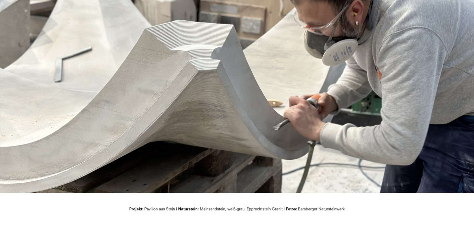 Auf dem Campus Süd der TU Dortmund steht seit 2024 ein außergewöhnliches Bauwerk: Ein Pavillon aus 33 massiven Natursteinelementen aus Mainsandstein, weiß-grau, ganz ohne Einsatz von Beton. Bereits 2023 hatten Studierende im Rahmen des Entwurfs- und Konstruktionsseminars „Pavillon aus Stein“ und dem Bamberger Natursteinwerk Hermann Graser das Potenzial von Naturwerkstein als tragendes Element in der zeitgenössischen Architektur untersucht.