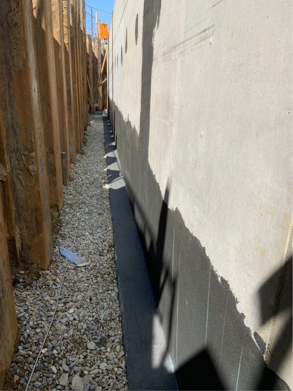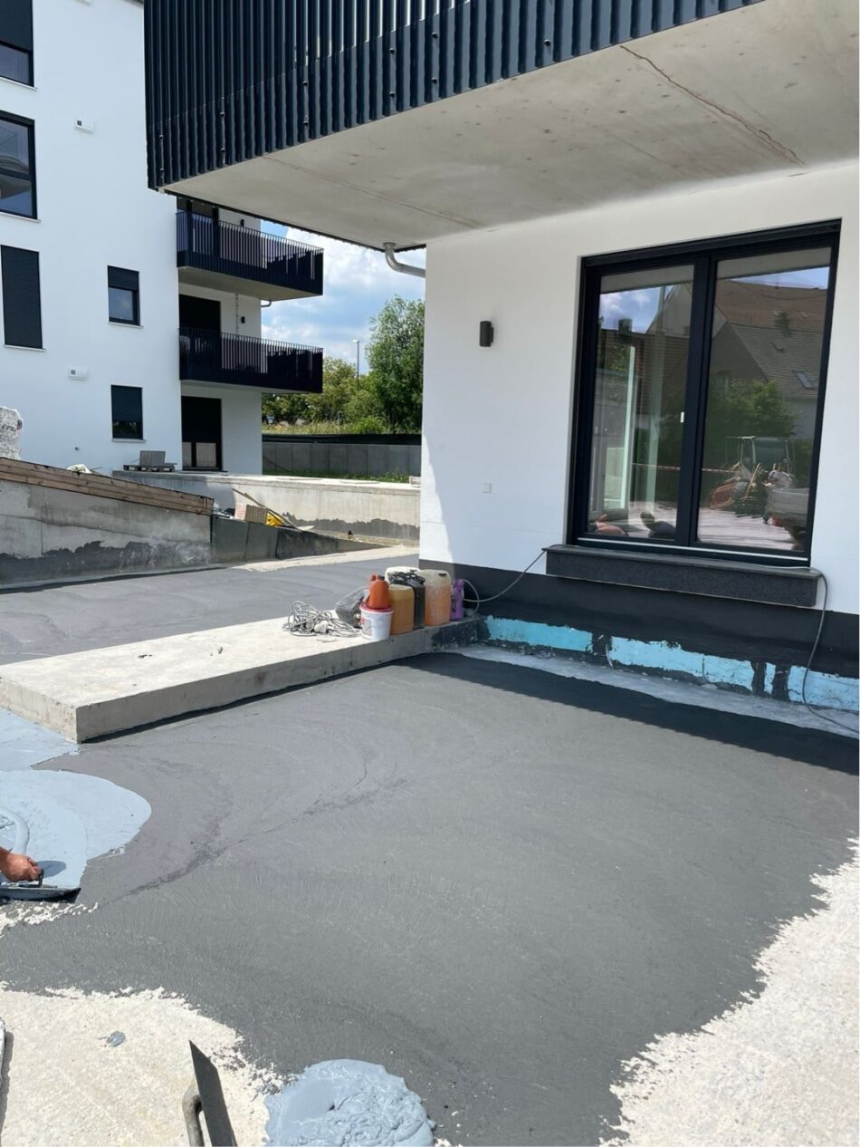Zum hohen Qualitätsanspruch des Projekts gehörte auch eine zuverlässig ausgeführte Bauwerksabdichtung. Daher erfolgte die Abdichtung mit einem aufeinander abgestimmten System von Remmers. Zunächst wurden die mineralischen Untergründe mit Kiesol MB vorbereitet. Die Spezialgrundierung verbessert die Haftung zur nachfolgenden reaktiven Abdichtungsschicht MB 2K– eine wichtige Basis für die folgenden Arbeitsschritte. In den Eck- und Anschlussbereichen brachten die Verarbeiter von der Plapperer Projekt GmbH anschließend das Fugenband Tape VF 120 ein. Das Band lässt sich flexibel an die Details anschließen, gleicht Bewegungen durch sein hohes Dehn- und Rückstellvermögen sicher aus und ist wasserdicht. So entsteht ein belastbarer Übergang zwischen Boden, Wand und weiteren Anschlusspunkten. Im nächsten Schritt wurde MB 2K – eine flexible, polymermodifizierte Dickbeschichtung (FPD) – in zwei Lagen aufgetragen. Insgesamt rund 10.000 Quadratmeter Fläche erhielten so eine robuste, durchgehende Abdichtung. Dazu gehörten die gegen drückendes Wasser (W2.1-E) zu schützende Betonaußenwand, die Sockelbereiche (W4-E), die Tiefgaragendecke (W3-E) sowie die Bodenplatte der Tiefgarage unter dem Estrich. Ein entscheidender Vorteil im Bauablauf war die schnelle Durchtrocknung von MB 2K, die zügige Folgegewerke ermöglichte und die Wirtschaftlichkeit der Arbeiten deutlich erhöhte. „Mit Remmers MB 2K konnten wir die Bauwerksabdichtung zeiteffizient und sehr wirtschaftlich realisieren. Das System ist perfekt auf unsere Anforderungen ausgerichtet und ließ sich leicht verarbeiten“, betont Michael Plapperer, Geschäftsführer von der Plapperer Projekt GmbH.
