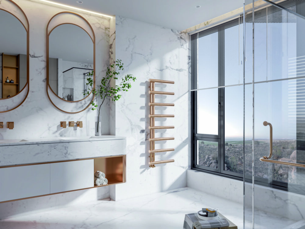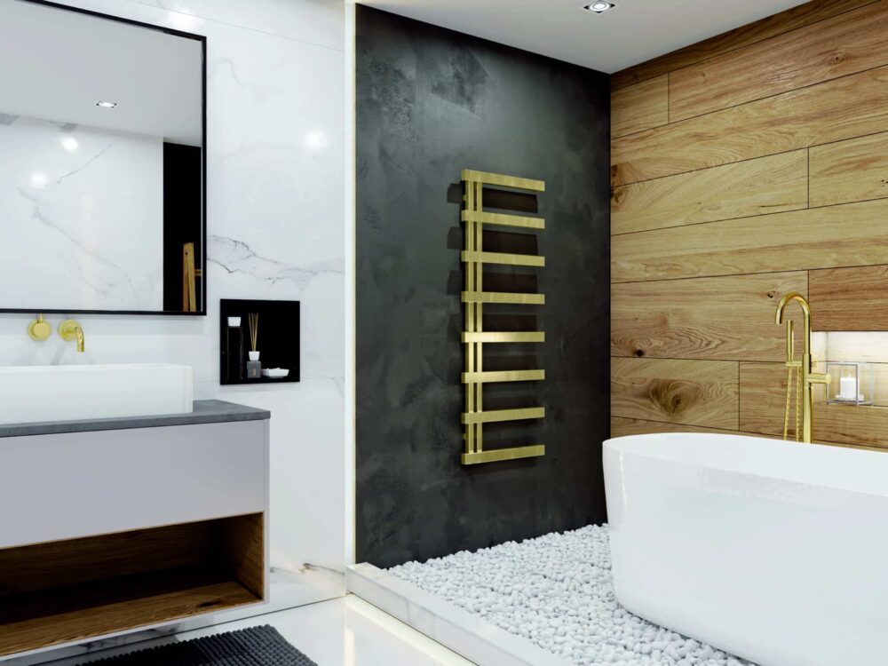 Grundsätzlich setzen die neuen PVD beschichteten Oberflächen der Design-Heizkörper Zehnder Alban und Zehnder Chime besonders interessante Farb- und Gestaltungsakzente im Badezimmer. Folgende drei Ausführungen sind erhältlich: Messing gebürstet, schwarz Chrom gebürstet und Bronze gebürstet. Dabei harmonieren diese optisch hervorragend mit modernen Sanitärarmaturen wie Wasserhähnen oder Duschköpfen in den passenden Ausführungen – für ein stimmiges Design und eine harmonische Wohlfühl-Atmosphäre im Badezimmer.