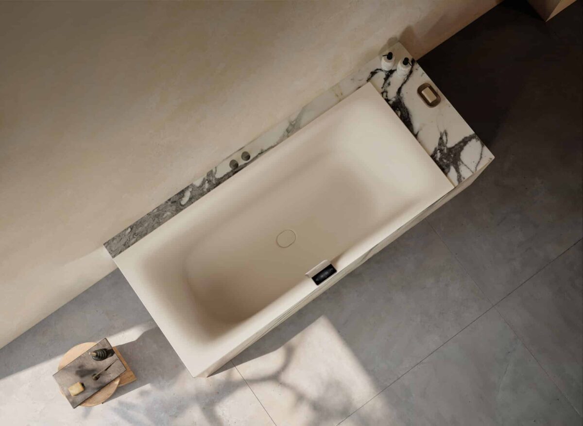 Das zurückhaltende Design der Wanne fügt sich harmonisch in jeden architektonischen Kontext ein und macht sie gleichzeitig zum stillen Mittelpunkt eines Raumes, der nur eines will: Dem Ich den Zen-Moment zu schenken, den es braucht.