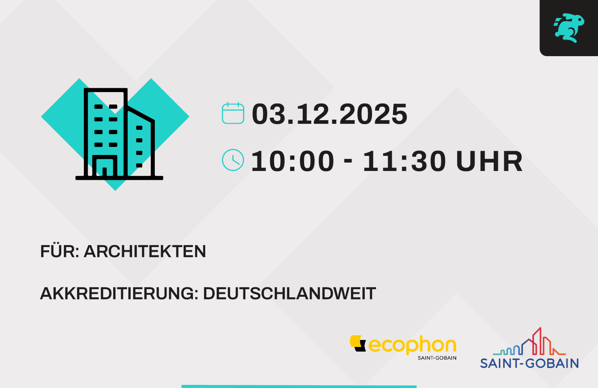 Ecophon & Saint-Gobain vermittelt Dir praxisnahes Wissen zu den Anforderungen und Rahmenbedingungen der Nachhaltigkeit. Im Laufe der Fortbildung erfährst Du, wie Recycling und Zirkularität neue Perspektiven eröffnen, was der Rückbau am Beispiel von Glas verdeutlicht und welche Lösungsansätze konkrete Wege für zukunftsfähiges Bauen aufzeigen.