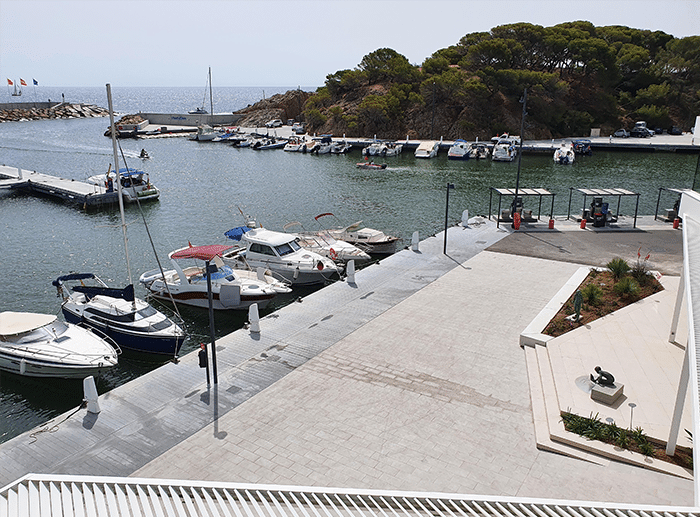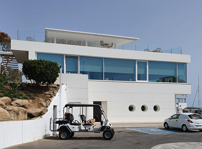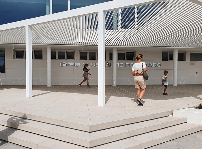 Im Zuge der Planungen in der Gemeinde Platja d’Aro, entschloss sich auch der Club Nàutic Port d’Aro zur Sanierung seines Clubgebäudes. In dem Gebäude befinden sich unter anderem ein Restaurant, die Hafenmeisterei, exklusive Clubräume und die sanitären Anlagen für Tagesgäste in der Marina. Verantwortlich für den Umbau war das Architekturbüro abx arcquitectura; das Projekt wurde im Sommer 2023 abgeschlossen. Es fügt sich nun harmonisch in die Umgebung ein, darüber hinaus wurde die Zugänglichkeit überarbeitet und seine Energieeffizienz deutlich verbessert.