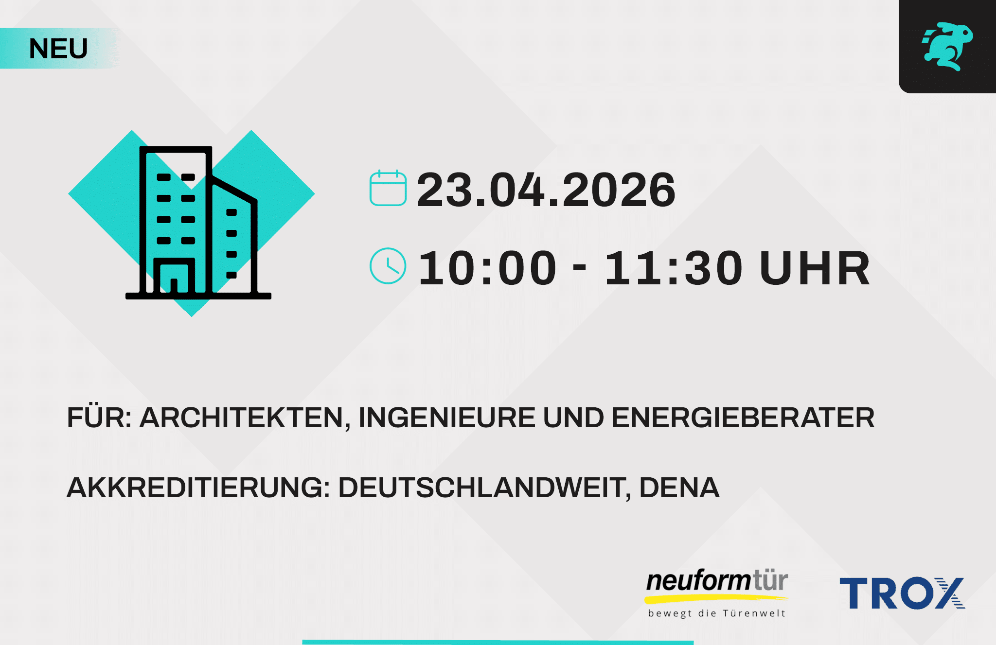 Melde Dich jetzt zur kostenlosen online Fortbildung an und freue Dich auf Experten aus der Bauindustrie, deren Lösungen und lebhafte Diskussionen!