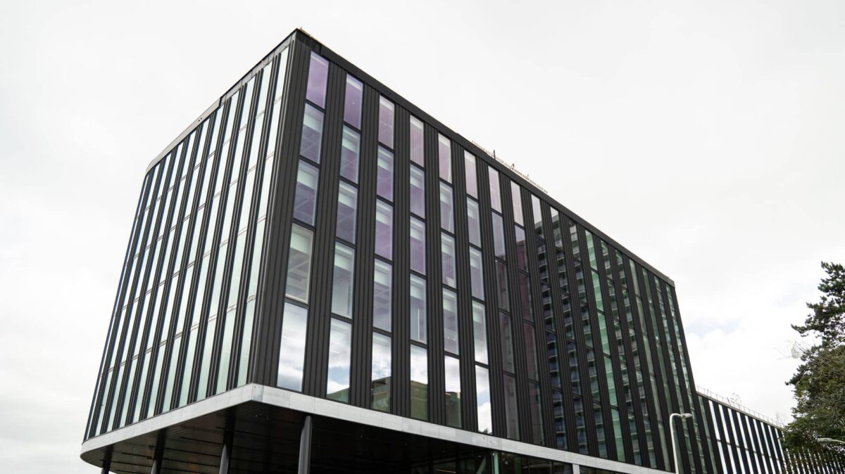 Die Fassade überzeugt durch den Einsatz von BEMO Stehfalzprofilen N65-305, die rhythmische Akzente setzen und die Glasfronten elegant unterbrechen. Die Aluminiumbahnen in der Farbe Gabbro Crinkle erzeugen einen markanten Kontrast und verleihen dem Gebäude eine moderne, hochwertige Anmutung. Insgesamt wurden rund 4.850 m² Stehfalz verbaut, inklusive perforierter Profile und Sonderbreiten.