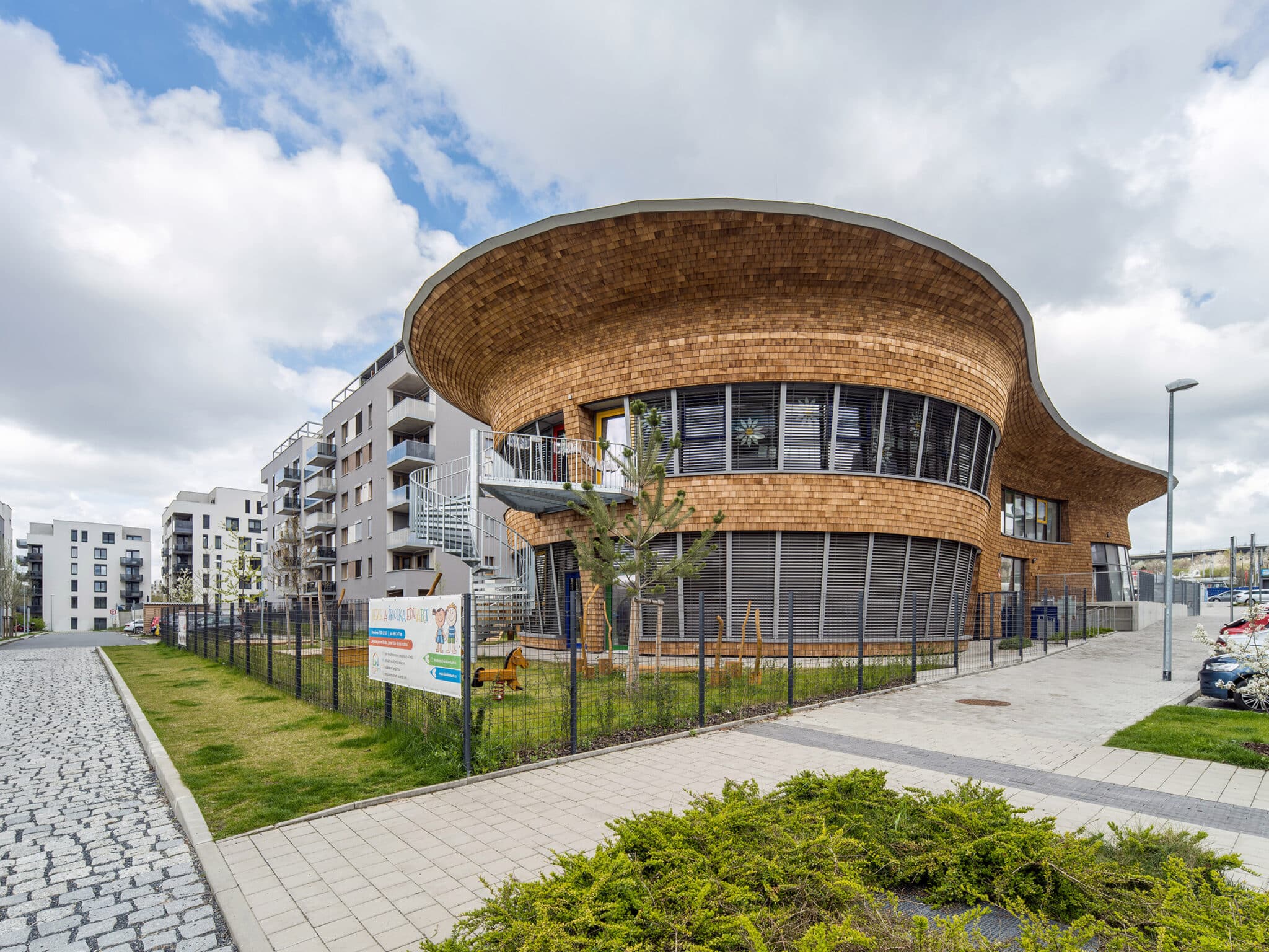 Viel Licht, Luftigkeit und der bewusste Einklang mit der Natur zeichnen die finnische Architektur aus. Das ist auch im Falle des neuen Kindergartens im Stadtbezirk Prag 9 nicht anders. Darüber hinaus ist der vom renommierten finnischen Architekten Jyrki Tasa entworfene Kindergarten mit seinen gerundeten Formen und seiner außergewöhnlichen, an einen Pilz erinnernden Struktur, äußerst originell. Auch die tschechische Marke RAKO beteiligte sich an dem herausragenden Projekt des finnischen Projektentwicklers YIT.