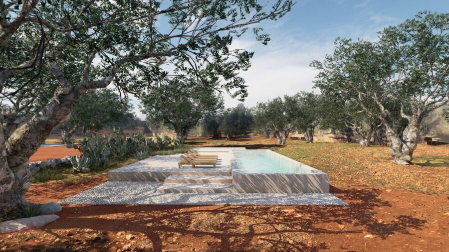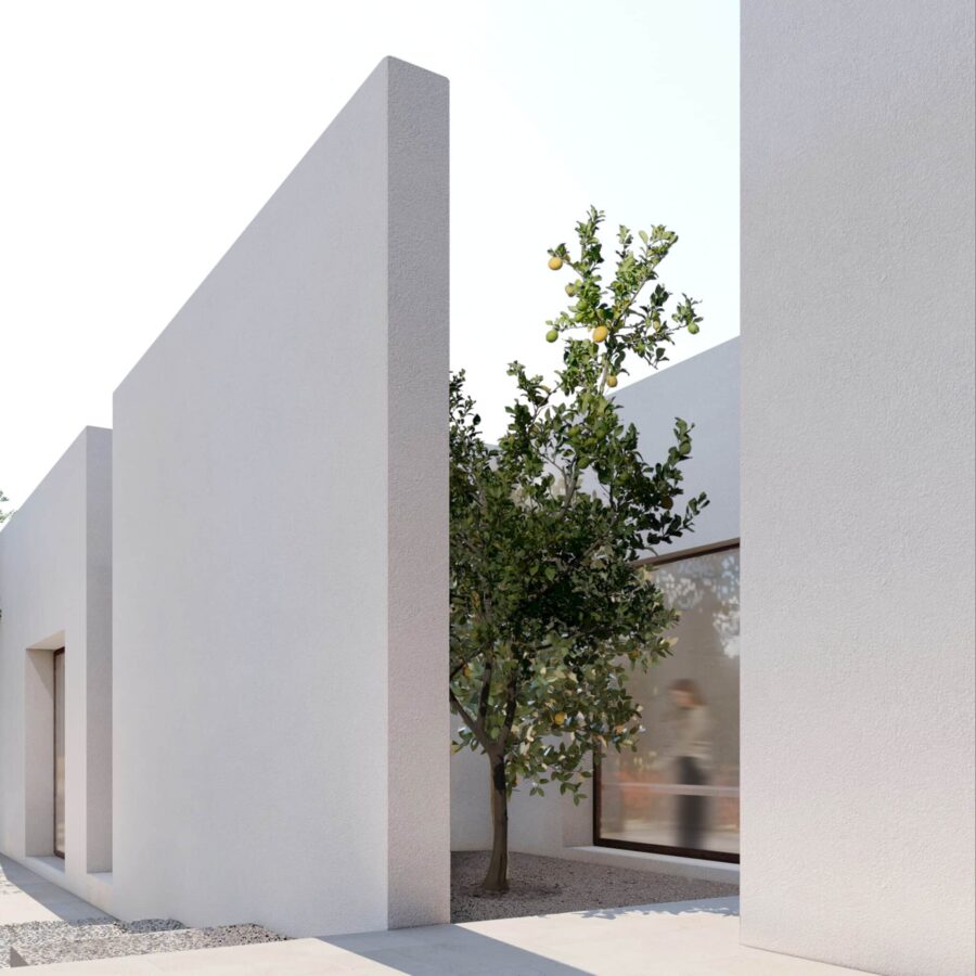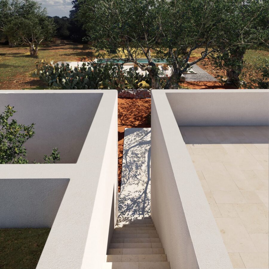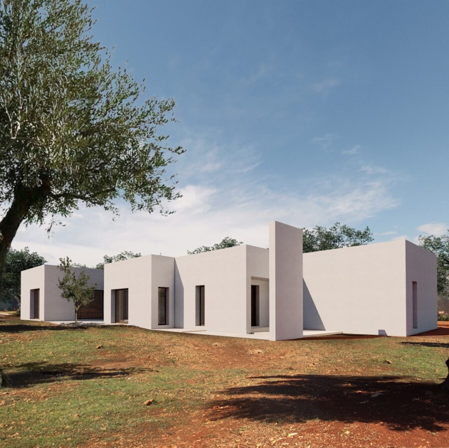 Eingebettet in einen jahrhundertealten Olivenhain bei Ostuni entsteht ein Haus aus weißen Volumen und schattigen Zwischenräumen. Inspiriert von Louis Kahns Adler House entwickelt sich die Architektur aus einem tiefen Verständnis für Licht und Ort. Die Volumen „gleiten“ in ihrer Komposition, schaffen ein Spiel aus voll und leer, betonen die Reinheit der Formen und integrieren sich zugleich in die Natur.