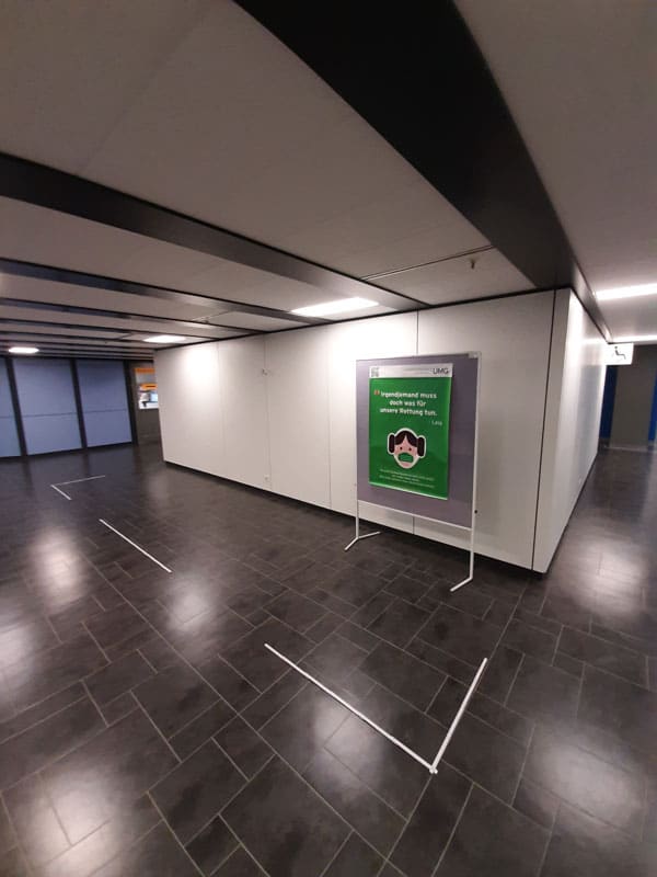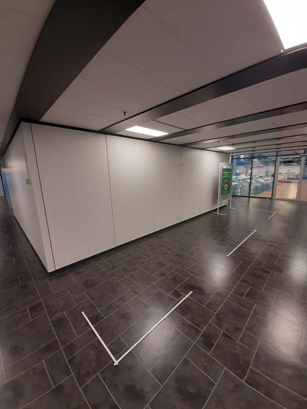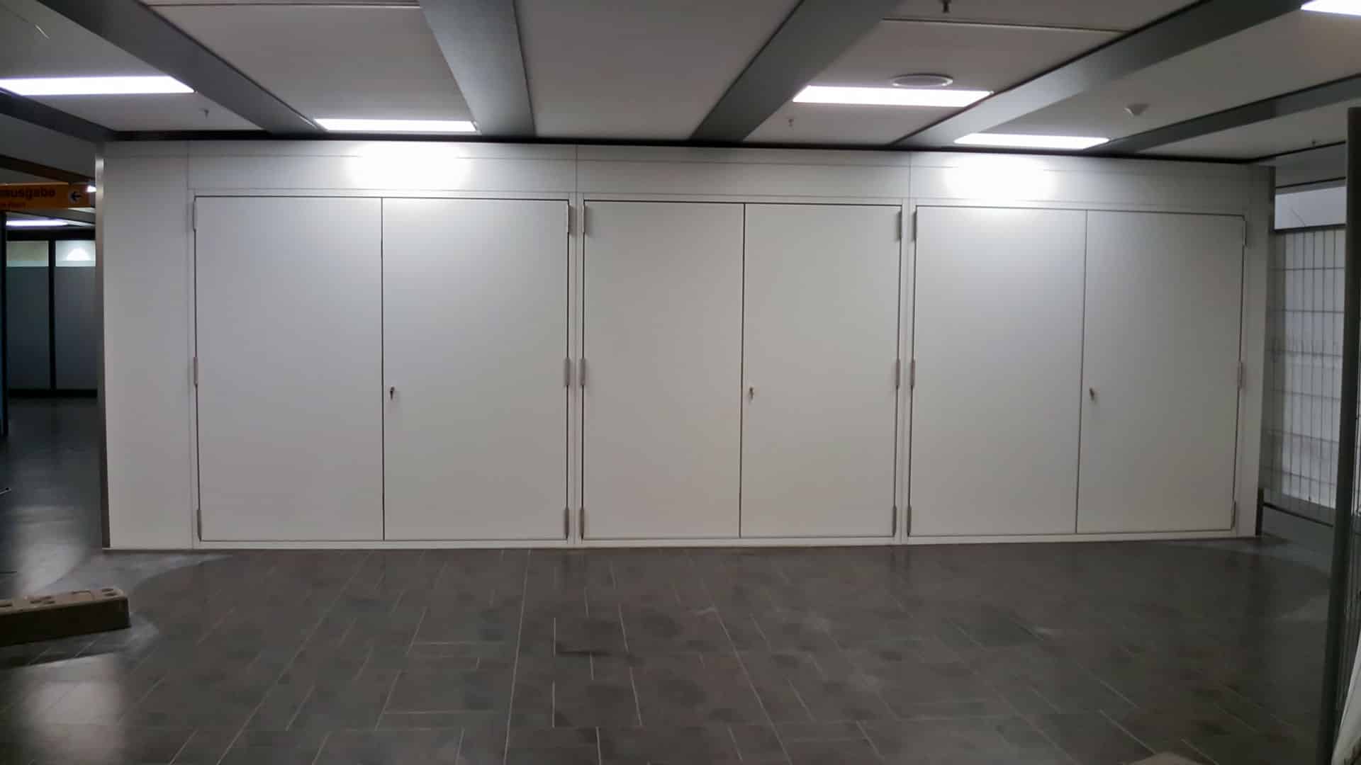 Durch drei großformatige, zweiflügelige Revisionsabschlüsse wurde eine Zugänglichkeit zu den Datenverteilern optimal sichergestellt. Die modulare Bauweise ermöglichte eine schnelle und nahezu staubfreie Montage im laufenden Betrieb.