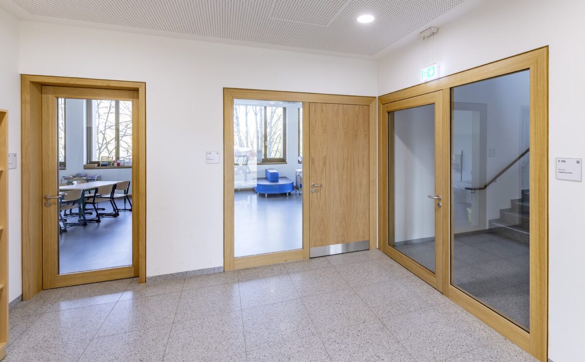 Gerade in Bildungseinrichtungen ist die Kombination aus Brandschutz, Rauchschutz, Schallschutz und widerstandsfähigen Türen entscheidend: Sie sorgt für klare Strukturen im Gebäude, unterstützt ruhige Lern- und Aufenthaltsbereiche und bietet gleichzeitig die notwendige Sicherheit im täglichen Betrieb. So entsteht ein Umfeld, das nicht nur optisch überzeugt, sondern vor allem im Alltag zuverlässig funktioniert.