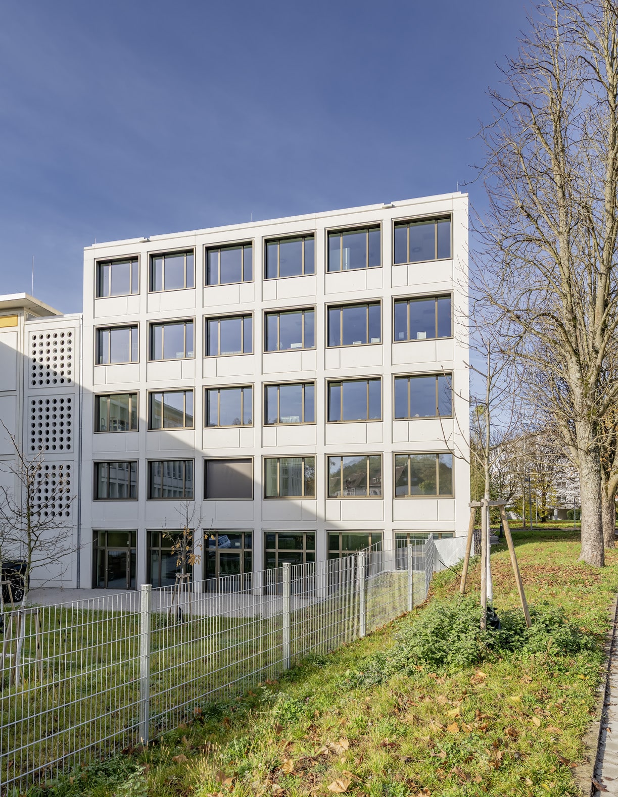 Für den fünfgeschossigen Neubau wurden über 70 neuform-Türelemente verbaut, exakt abgestimmt auf die unterschiedlichen Anforderungen im Schulbetrieb. Zum Einsatz kamen unter anderem Framic-Türelemente in diversen Ausführungen mit Schallschutzklasse I–III, robuste Objekttüren in unterschiedlichen Bautypen sowie Rauchschutztüren mit einer Türdicke von 70 mm. Ergänzt wurde das Konzept durch T30-Brandschutztürelemente sowie F30-Festverglasungen, die dort eingesetzt wurden, wo brandschutztechnisch notwendige Abtrennungen gefordert sind.