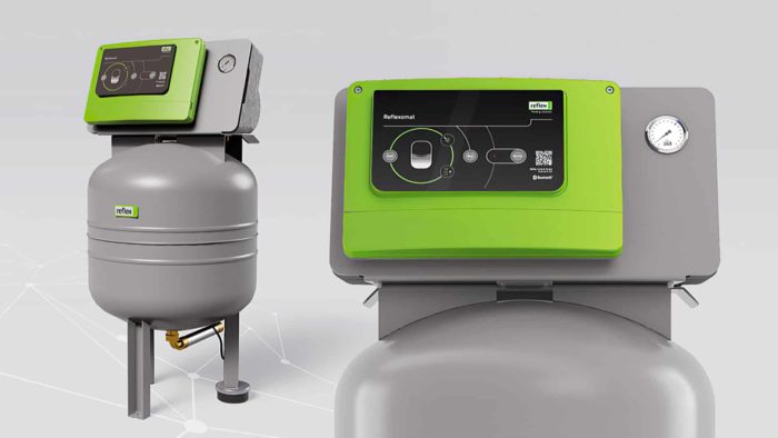 Bei der dynamischen Druckhaltung sind im Wesentlichen zwei fortschrittliche Prinzipien zu unterscheiden: die kompressorgesteuerte Druckhaltung, wie der Reflexomat, und die pumpengesteuerte Druckhaltung mit dem Variomat. Bei der kompressorgesteuerten Druckhaltung wird dem Ausdehnungsvolumen des Heizungswassers ein Gaspolster entgegengehalten. Dieses Gaspolster ist nicht statisch. Es wird durch Ablassen des Gases beim Aufheizen und Zuführen, in dem Fall bei Abkühlung, innerhalb enger Druckgrenzen gehalten. Dadurch kann zum einen der Druck in einem Bereich von ±0,1 bar gehalten und zum anderen das Volumen des Ausdehnungsgefäßes nahezu vollständig genutzt werden. Mittlerweile punkten auch Versionen mit hocheffizientem Kompressor und Zwei-Kolben-Technologie, die im niedrigeren Drehzahlbereich arbeiten und damit leiser im Vergleich zur Standardausführung sind. Im Bereich der kompressorgesteuerten Druckhaltung gibt es seit jüngstem eine weitere neue Entwicklung, auf die Fachhandwerker, Planer und Betreiber zurückgreifen. Der Reflexomat XS wurde vor allem für den Einsatz in kleinen und mittelgroßen Anlagen von Heizungs- und Kühlsystemen konzipiert. Durch das kompakte Design spielt das Produkt insbesondere bei beengten Raumverhältnissen seine Vorteile aus. Zudem sind viele digitale Assistenten schon werkseitig vorinstalliert und helfen unter anderem bei Störungen. Auch kann die Druckhaltstation bequem via App gesteuert und überwacht werden.