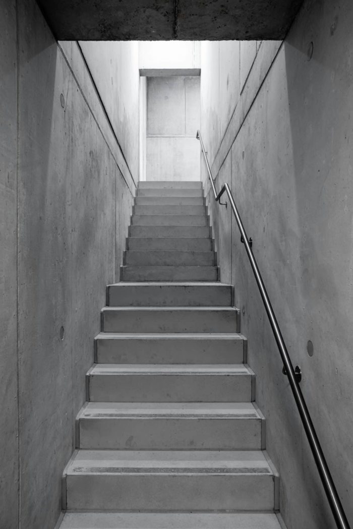 Die Sanierung und Erweiterung des Feuerwehrhauses Kaufbeuren besticht durch ihre klaren Geometrien. Die geschlossenen Außenwandflächen bestehen aus Sichtbeton und profilierter Metallbekleidung, welche sich bis zur Spitze des Schlauchs- bzw. Übungsturmes hochziehen.