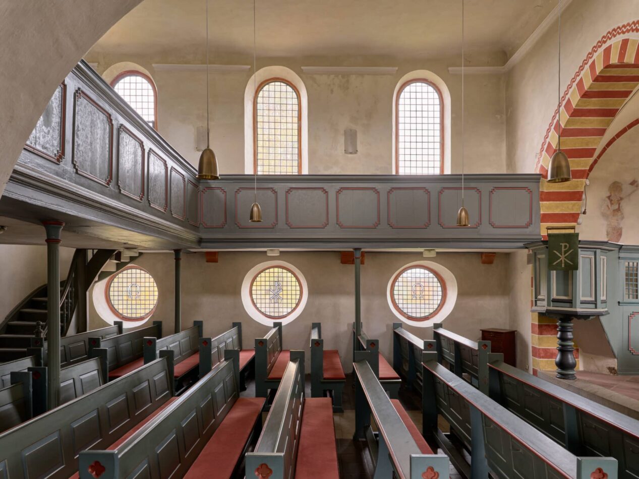 Bei der anstehenden Innensanierung geht es darum, die historischen Schichtungen zu achten und zugleich funktional neu zu fassen. Durch die sorgfältige Abstimmung von Licht, Farbe und Materialität entsteht ein Innenraum, der das historische Erbe würdigt und zugleich zeitgemäß nutzbar macht.