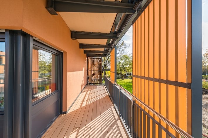 Als Einzelelemente oder fassadenübergreifende Konstruktionen gestalten die Lamellen den Charakter eines Gebäudes mit. Sie schützen vor Sonne, Regen und neugierigen Blicken, kommen gleichzeitig als dekoratives Element zum Einsatz und schaffen somit neue Räume im Außenbereich. Als baulicher Sonnenschutz ermöglichen sie die Verschattung von Gebäuden, tragen zu deren natürlicher Klimatisierung bei und schaffen dadurch ein gesundes Wohnklima. Die vorgebauten Lamellen dienen damit clever eingesetzt zur Gebäudekühlung und sind darüber hinaus auch zur attraktiven Verkleidung von Fassaden, Car- und Bikeports sowie Einhausungen für Reststoffe und Fahrzeuge geeignet.