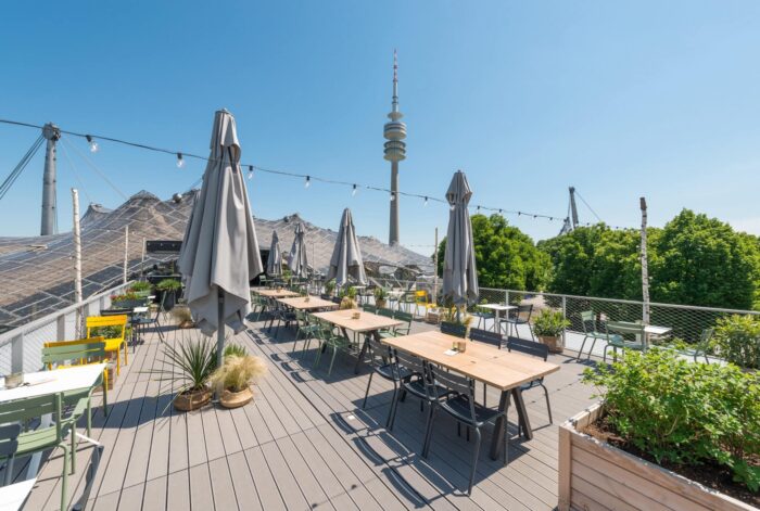 Der Olympiapark in München ist weltweit bekannt und darüber hinaus ein überaus beliebtes Naherholungsziel – nicht zuletzt aber ist er eine architektonische Ikone. Im Frühjahr 2022 wurde dort eine logistische Meisterleistung vollbracht: der Austausch des Belags auf den Coubertin-Terrassen. So einfach dies im ersten Moment klingen mag, so komplex waren Planung und Durchführung des Projekts. Im Zuge der umfangreichen Sanierungs- und Umbaumaßnahmen wurde auf zwei übereinanderliegenden Gastronomieterrassen 470 Quadratmeter der Diele „Die Beliebte massiv“ von Naturinform verlegt. Das Unternehmen gilt als Spezialist für hochwertige Holzverbundwerkstoffe „made in Germany“.