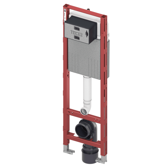 Das kompakte Modul kann an TECEprofil Profilrohren befestigt werden und eignet sich darüber hinaus für den Einbau in Metall- oder Holzständerwände und für die Einzelblockmontage. Der Spülkasten des Kompaktmoduls ist eine komplette Neuentwicklung mit einem kleineren Tank; das Füllvolumen ist auf sieben Liter reduziert, was mit den aktuellen, wasser-sparsamen WC-Keramiken perfekt harmoniert – genug Wasser auch für schnelles Nachspülen.