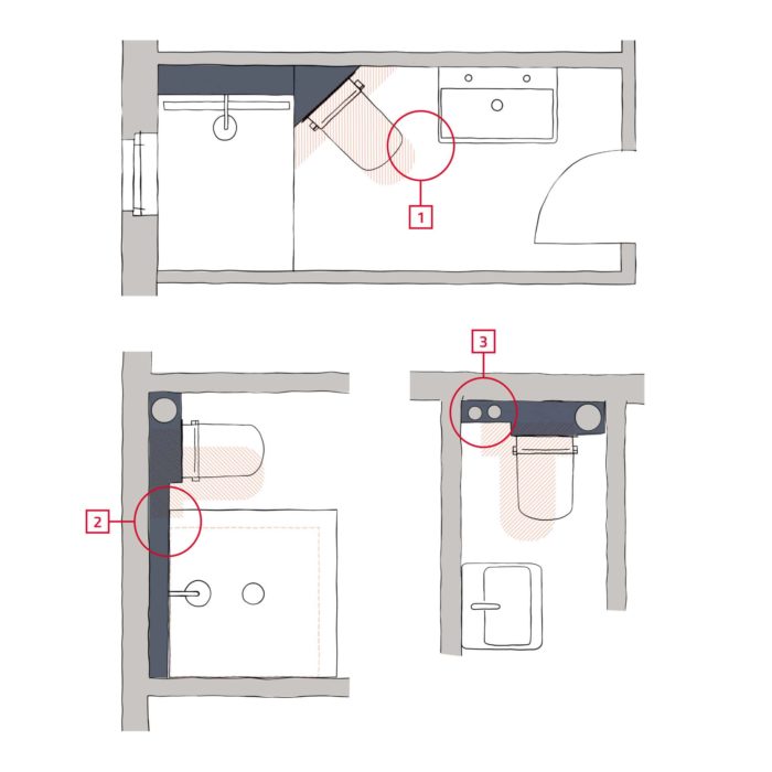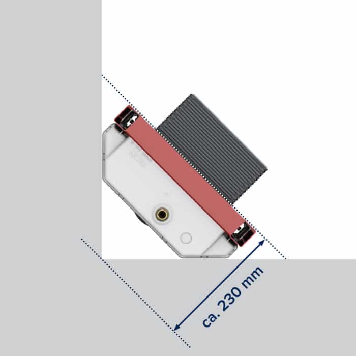 Installateure und Badplaner sind Platzmangel gewohnt: Verwinkelte Grundrisse, Schächte und unverrückbare Einbauten im Bad wie Wasseruhren, Absperrventile oder Abflussrohre schränken nicht selten das entspannte Planen ein. Der Kompaktspülkasten schafft hier neue Freiräume in Nischen oder beispielsweise auch für den Eckeinbau des WCs. Der Tank hat wandseitig zwei abgeschrägte Ecken, was bei der Eckmontage des Spülmoduls nicht nur platzsparend wirkt, sondern auch intuitiv die gleichschenklige Anbringung erleichtert.