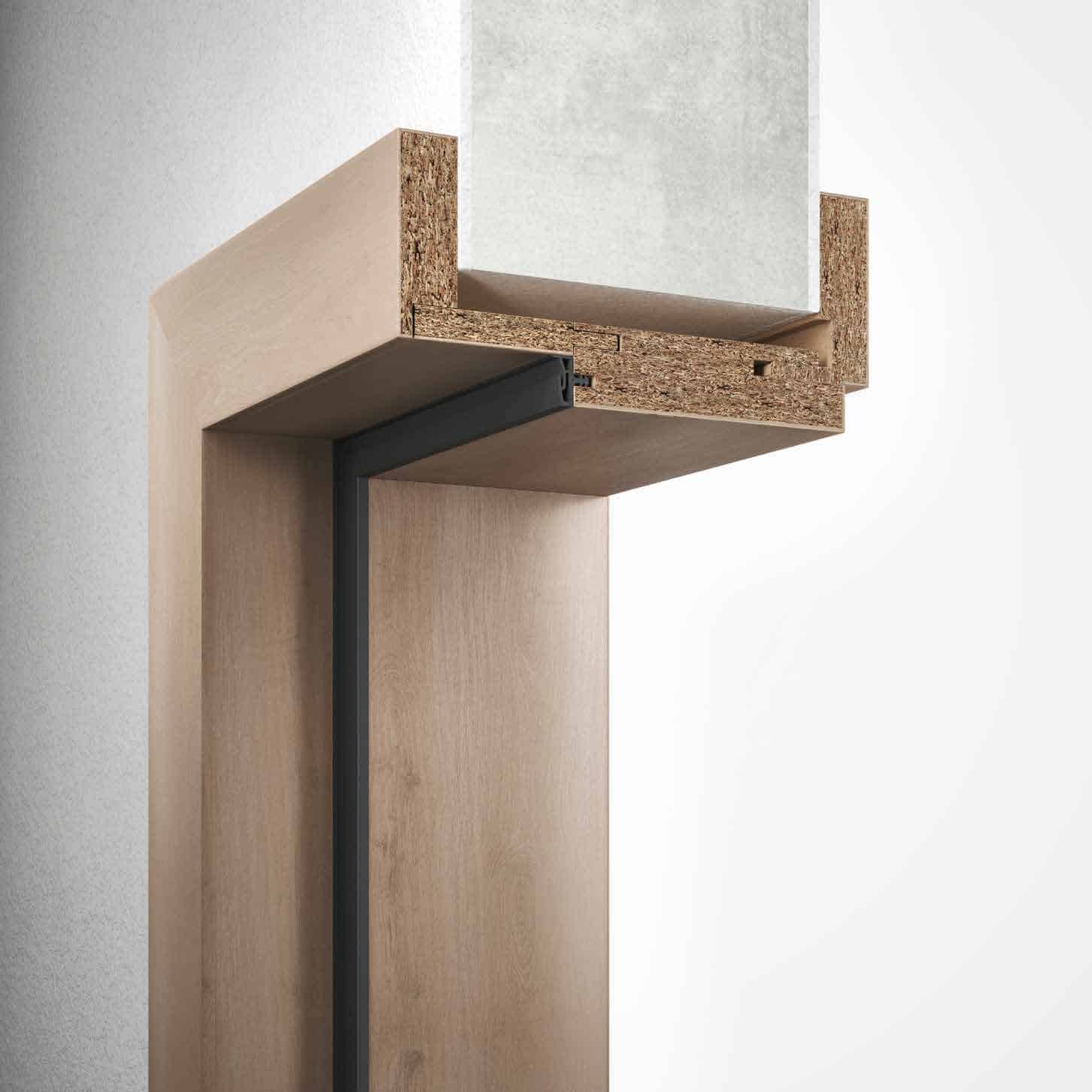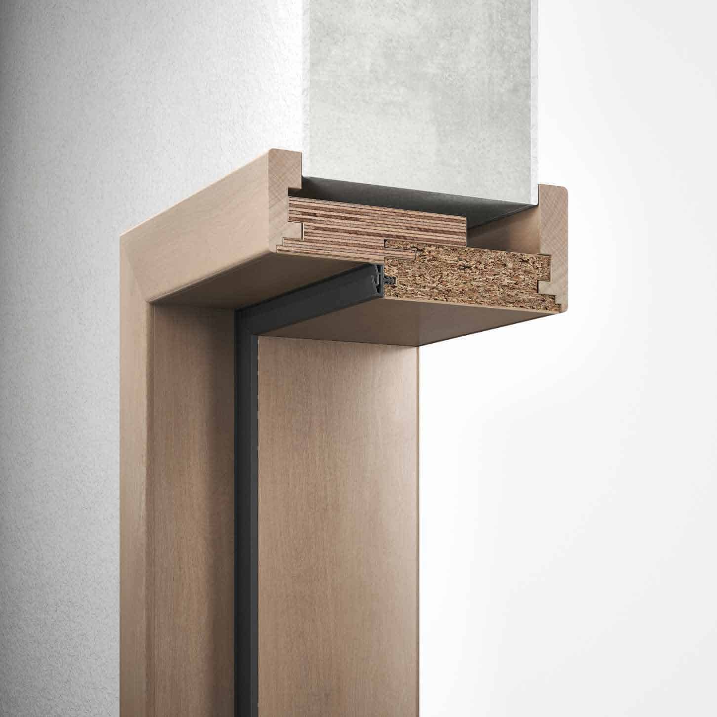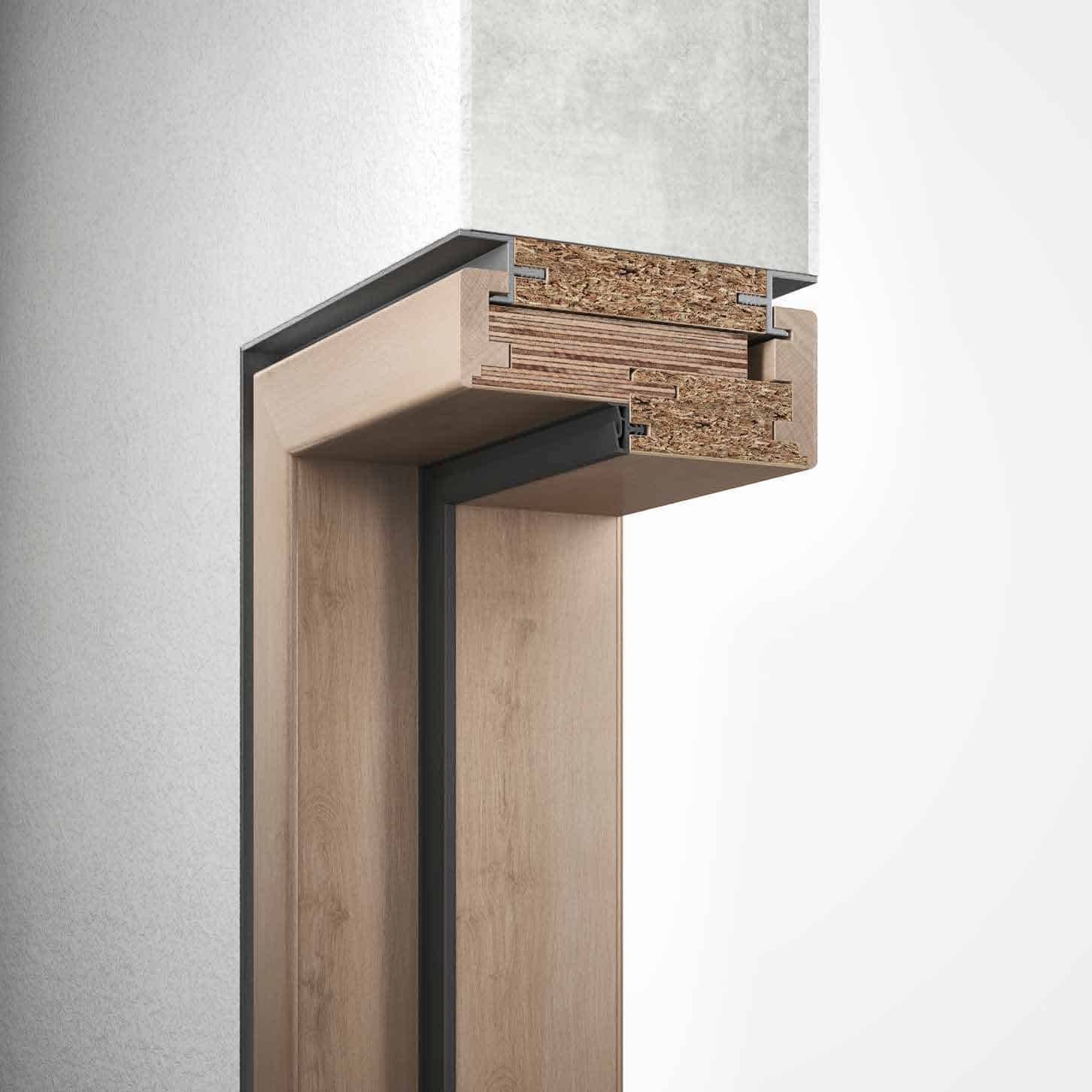 Hohe Beanspruchungen nimmt die VARIANTZARGE geduldig hin. Die stabile Holzzarge ist ähnlich robust, aber deutlich variabler einsetzbar als Aluminium- oder Stahlzargen. Dank ihrer variablen Spiegelbreiten und Wandstärken-Toleranzausgleich gewährleistet die VARIANTZARGE eine gleichbleibende Optik, unabhängig von der jeweiligen Konfiguration. Die umfassende Auswahl an Oberflächendesigns schafft Raum für individuelle Vorstellungen.