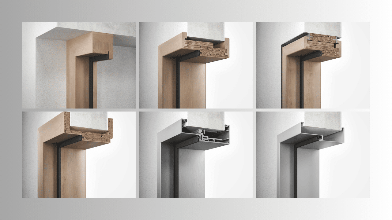 Türrahmen aus Holz, Aluminium und Stahlblech